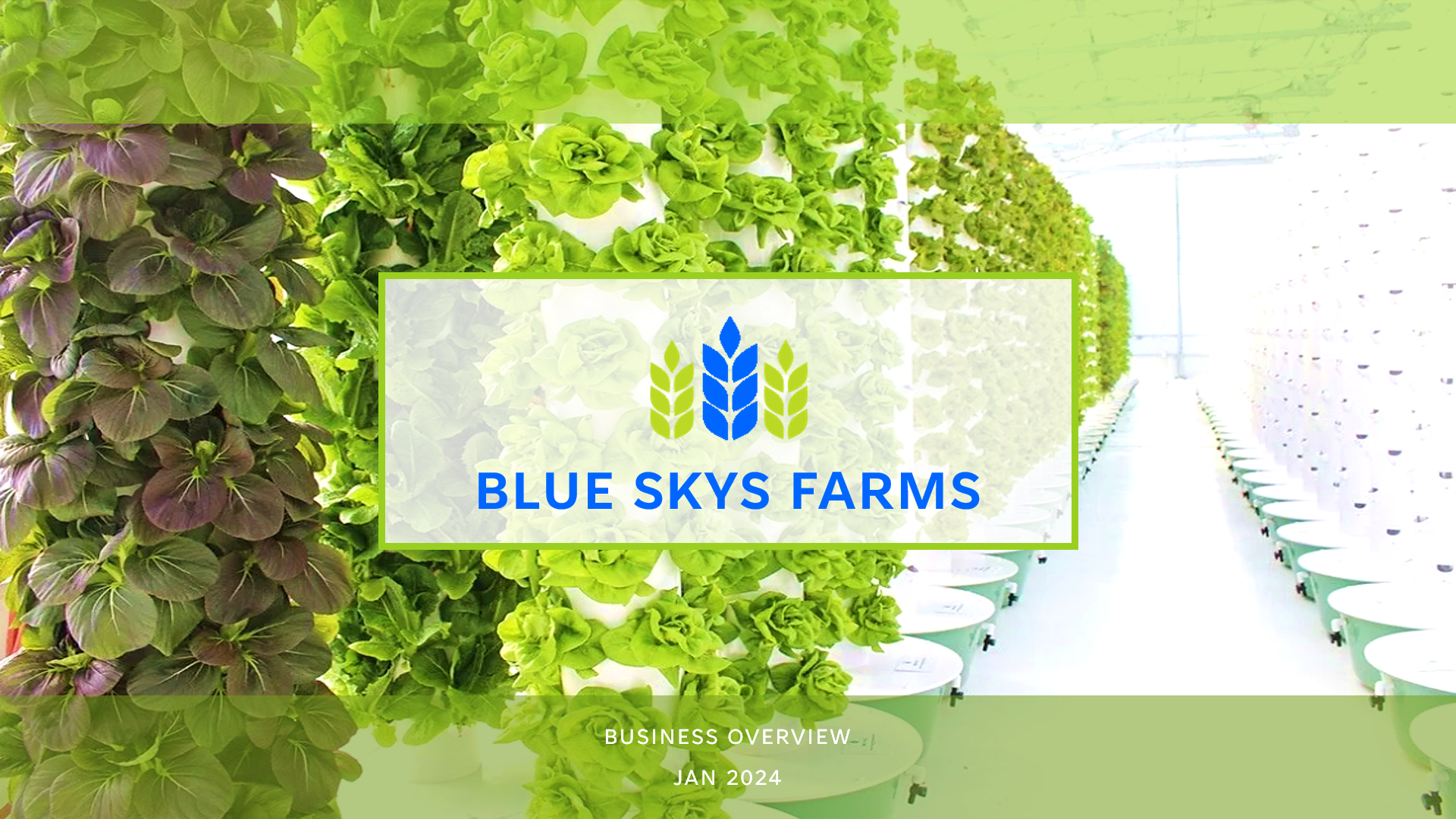 Blue Skys Farms is an early-stage concept for indoor vertical farming. to be embedded in sprawling & smaller communities to provide commercial produce accessible to populations for better nutritional and health options at less cost. The farms production is developed by hydroponic methods using only with water and sunlight or grow lights, without toxic soils, fertilizers and grown indoors to avoid harsh weather conditions.