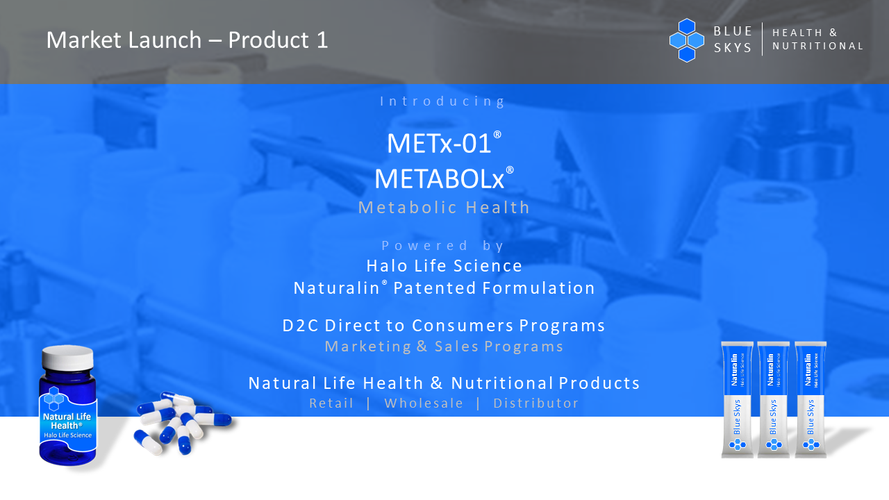 Blue Skys Health and Nutritional LLC, proudly announces an exclusive partnership with Halo Life Science, to launch and introduce a first-to-consumer brand products, Natural Life Health and Nutritional. Halo is an innovative AI-biotech life science company offering its new revolutionary discovery method for enhancing molecules to an exponential level of high solubility.
