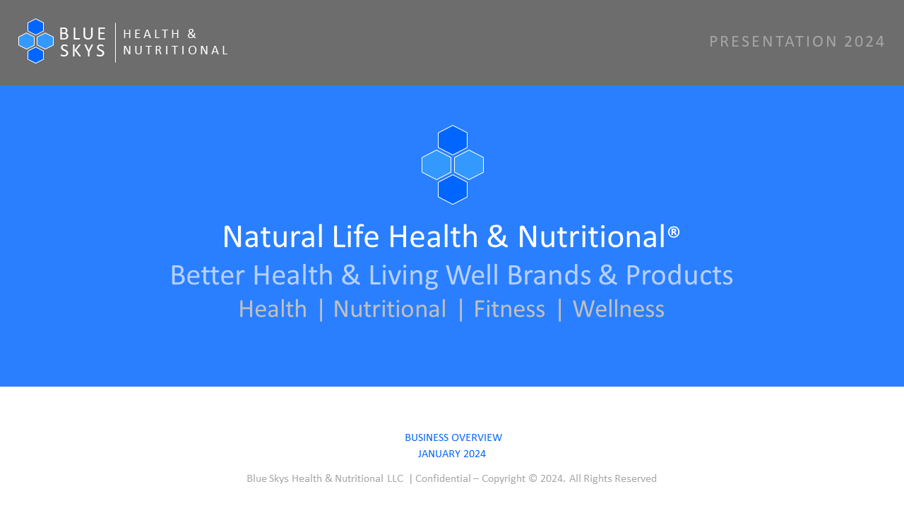 Blue Skys will launch its first direct-to-consumers subscription-based brand Natural Life Health & Nutritional branded products for health, nutritional, fitness & living well.