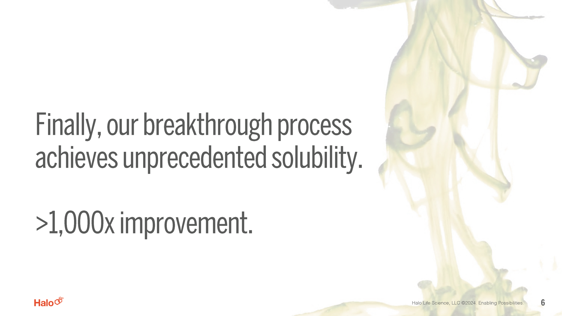 Halo’s advanced IONx process exceedingly enhances molecule solubility exponentially boosting a higher pathway bioavailability, while exceeding today’s low soluble or insoluble marginal products and their low effectiveness in current industry markets.